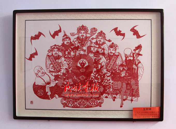 丰宁剪纸中源于中国神话的《五财神》,寄寓着对大富大贵生活的憧憬